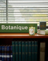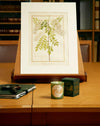 { Colored illustrations from botanical plates dating from the 19th Century appear through the matte, jade green tinted glass. In the center of the octagonal label, we find a cluster of absinthe's flowers printed in gold embossing. }