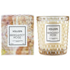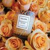 This Classic Candle is delicately sized for any space! The Roses Collection glass is textured with a classic geometric 3D cube pattern and colored to match the rose that served as fragrance and packaging inspiration.