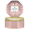 This beautiful, 3 wick octagonal tin candle adds elegance to any room. Complete with matching lid, the luxe gold interior provides a subtle yet decisive flair, a nod to the 1920's glass that inspired it.